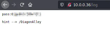We have a new path /log that has another path and a password.