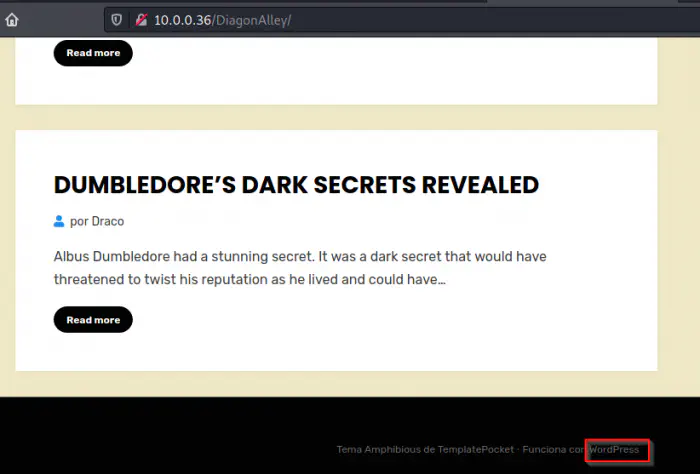 Inside the /DiagonAlley, we have a WordPress website.