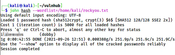 john hash --wordlist=/home/kali/rockyou.txt