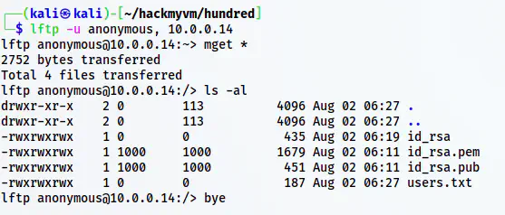 lftp -u anonymous, 10.0.0.14