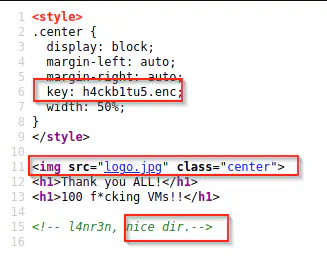 The page as a whole informs us that there is a directory that we can get by using the key. Also, we might also get some information by doing steganography from the logo.jpg file. Back to the key, we can encode information by using an RSA private key using OpenSSL rsautl. Upon encoding the information we get a file that might be what we are seeing on the CSS style. Hence, I checked if the file exists or not.