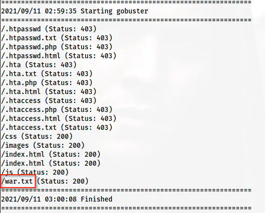gobuster dir -r -u http://10.0.0.22/site/ -w /usr/share/seclists/Discovery/Web-Content/common.txt -x txt,php,html -o dir-common.log