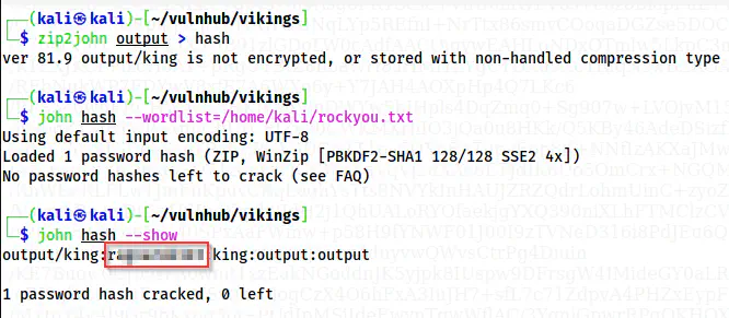 We can see from the screenshot above that the encoded text is the content of a zip file. When I opened the file, I saw that this has a file named king that is protected by a password.