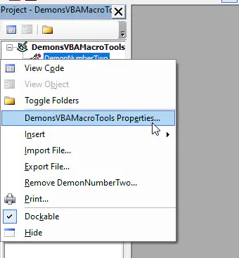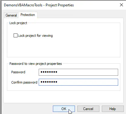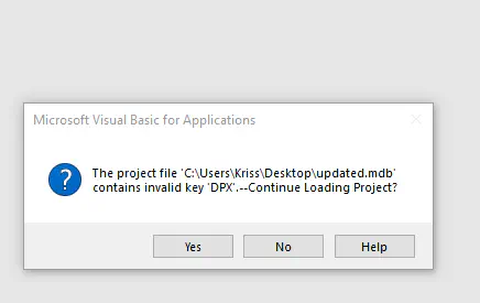 Now, it gave me a different message and I could continue by clicking “Yes”. Then, I opened the module but it still gave me an error. However, this also led me to a new window of Visual Basic. From that window, I could change the properties and add a password.