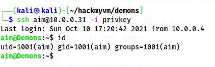 Thus, we now have the possible usernames of the target. Upon trying with the user aim, I could log into the SSH server with the key.