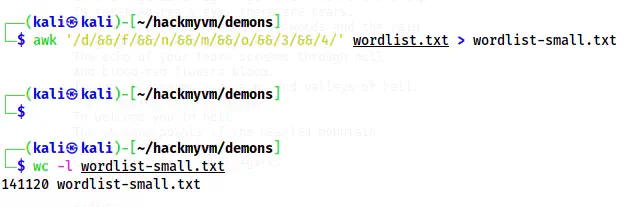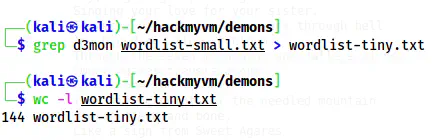 grep d3mon wordlist-small.txt > wordlist-tiny.txt