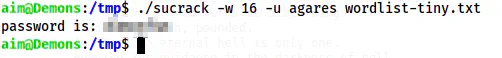 ./sucrack -w 16 -u agares wordlist-tiny.txt