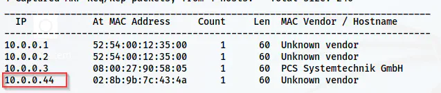 The IP address of the target is 10.0.0.44