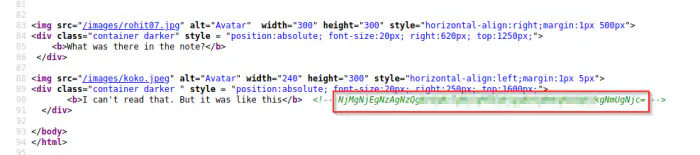 The conversation on the page provides us hint that we have to crack the meaning of the note. This is a base64 of some hex content. So, if we run the magic method on CyberChef, we instantly get the result. If not, we can also create a recipe by ourselves. I will show you both methods.