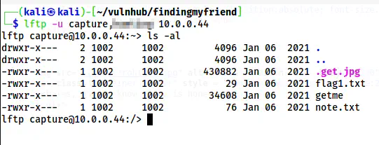 lftp -u capture 10.0.0.44