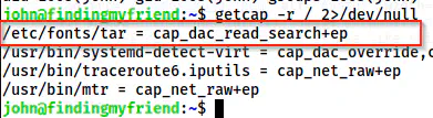 getcap -r / 2>/dev/null
