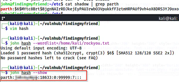 Since the tar is created by john, the files inside the tar also have the user as the owner. Next, we can copy the hash of the user parth to a file in our local machine and crack it using john the ripper.