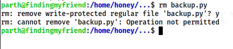 Let’s see what happens, when I as the user parth try to replace the script backup.py while it is still immutable.