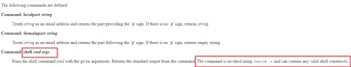 Moving forward, I checked the manual pages of the mailutils package and found that we can inject commands using a configuration file .mailrc on the home directory.