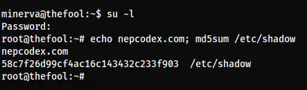 # Create an MD5 hash of "nepcodex" which is my new password for root