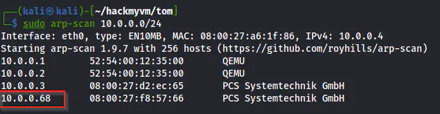 sudo arp-scan 10.0.0.0/24