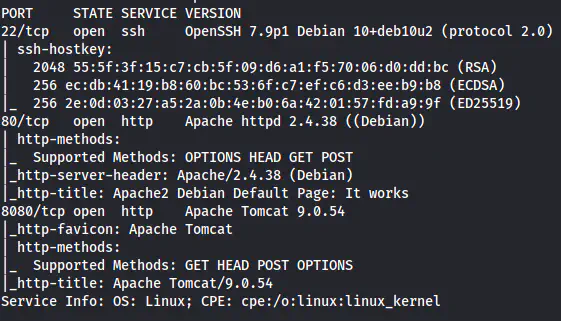 The home page contains the Apache default page. Thus, I did the gobuster scan.