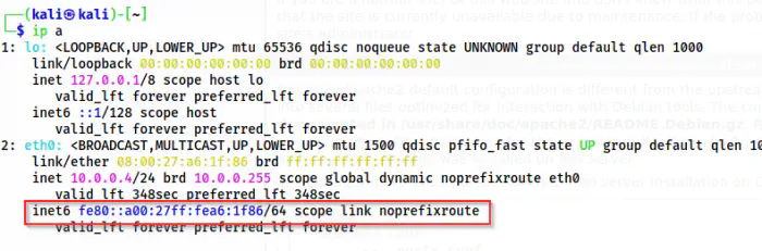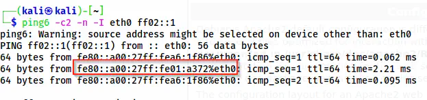 The highlighted address is the link-local IPv6 address of the target. Similarly, the one is the IPv6 of my machine.