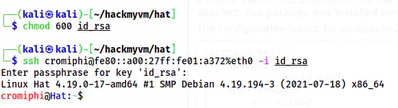 ssh cromiphi@fe80::a00:27ff:fe01:a372%eth0 -i id_rsa