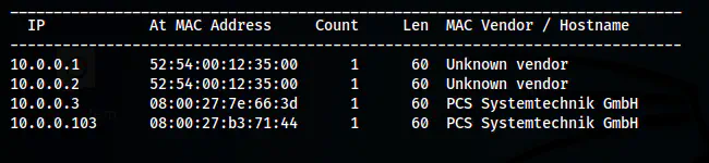 sudo netdiscover -r 10.0.0.0/24