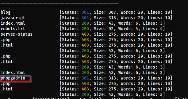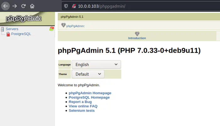 From the directory enumeration, I got a path for phppgadmin. This is basically the pgAdmin for PHP. Similarly, pgAdmin is the official admin panel for PostgreSQL servers.