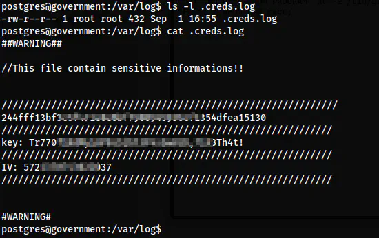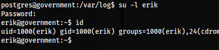 After I got the shell, I found a user erik on the system. Now, there is a file “.creds.log” inside the /var/log directory.