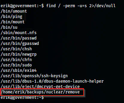 Lastly, I came to the part where I had to escalate privileges. For this, I checked the SUID binaries.
