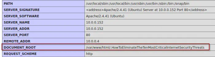 The next stuff is to run the script. But we should notice that the document root is “/var/www/html/.HowToEliminateTheTenMostCriticalInternetSecurityThreats”.