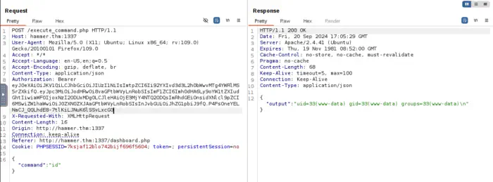 Using this token in the repeater, gives us access to all commands.